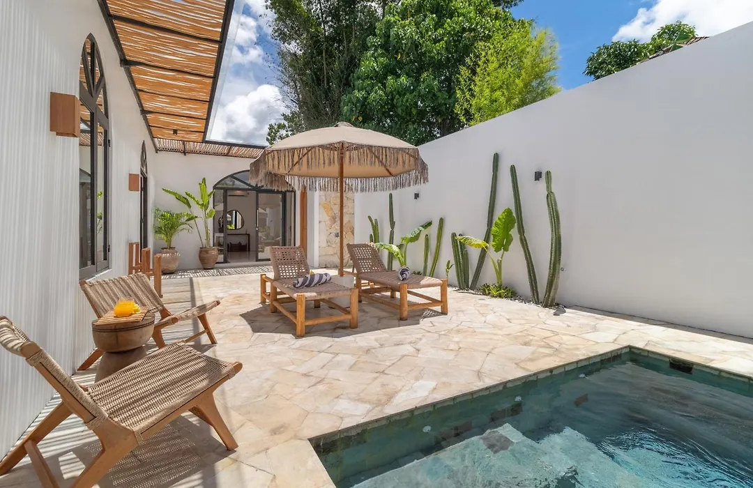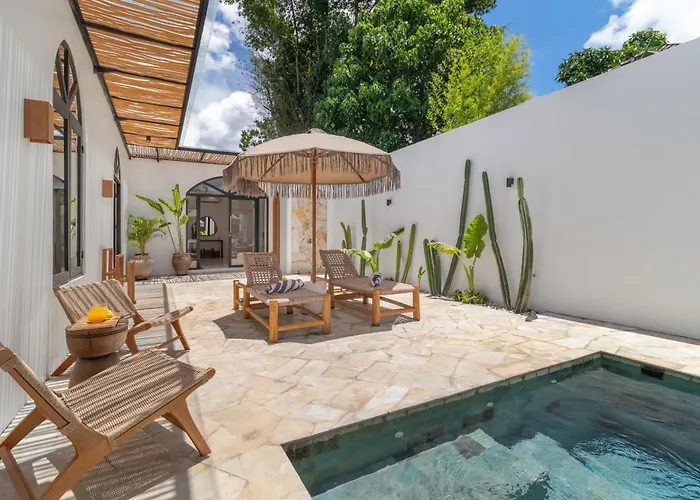 The villa is located in the Padonan district of Dalung, around 10 minutes' drive from CitraLand Waterpark. This Dalung villa also offers proximity to natural sights such as Batu Bolong Beach, located 3.1 miles away. Guests may also visit Metis, situated about 15 minutes' drive away.